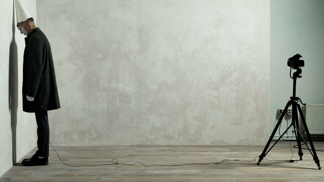 Mais revenons au personnage du clown, un clown triste, filmé et photographié par l’artiste néerlandais Erwin Olaf (né Erwin Olaf Springveld/°Hilversum/1959). Cette série, « April Fool » (2020) de photos et vidéos, est constituée d’autoportraits, d’un clown blanc mélancolique – se promenant, parfois, devant les rayons vides d’un supermarché –réalisés lors de ce cauchemar surréaliste que fut la pandémie, exprimant ce sentiment de paralysie qui nous imprégnait, l’artiste résumant cette situation par la formule : « Le château de cartes s’effondre et nous sommes tous des jokers. »