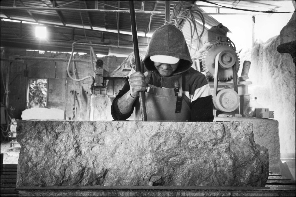 Fabien Mérelle expose, également, une autre sculpture, celle d’un éléphant, en bronze, … porté à … dos d’homme, cette création étant posée sur un socle en pierre, son titre étant : « A l’Origine » (bronze : 80 x 69 x 36 cm/socle : 100 x 40 x 40 cm), cet éléphant nous rappelant une autre époque, celle où ses congénères, « à l’origine », paradaient dans les villes, afin d’annoncer les prochains spectacles d’un cirque, alors que, depuis 2013, les animaux sauvages ne peuvent plus être exhibés par aucun cirque, comme c’est le cas, désormais, dans une vingtaine de pays européens …