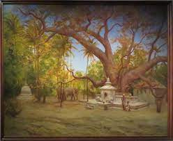 Cette section évoquant le bois sacré, comment ne pas citer l’ « arbre Bodhi », aussi connu, dans le Bouddhisme, comme étant l’ « arbre de l’éveil », sous lequel serait resté en méditation, pendant 49 jours, Siddhartha Gautama, dit « Shakyamuni », le « Bouddha historique » (VIè ou Vè siècle avant notre ère). L’oeuvre « Arbre de Buddha » (1878), du peintre français Félix-Elie Régamey (1844-1907), nous montre cet arbre, recouvrant un temple sacré, où est conservée une dent du Bouddha, croqué à Kandy, au Sri Lanka.