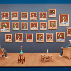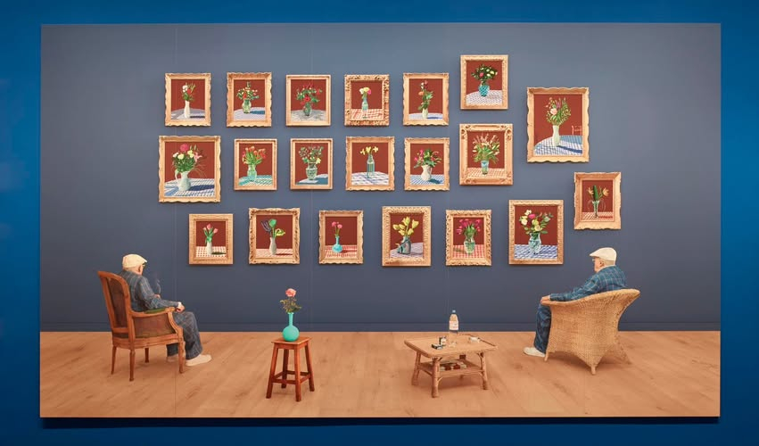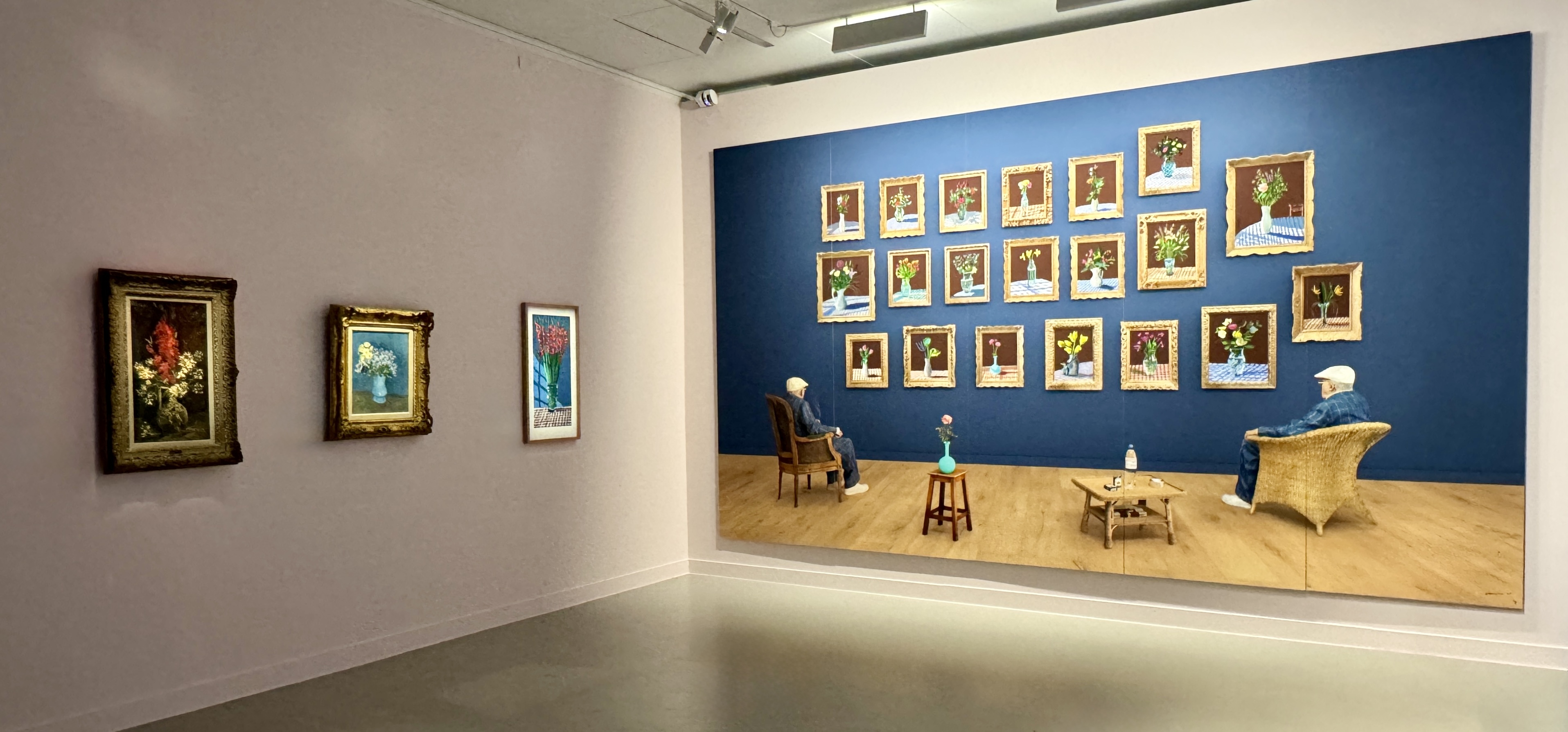 Comme Vincent van Gogh, David Hockney a peint de nombreux pots de fleurs, au "CAP", une salle est dédiée à ces derniers, une oeuvre monumentale du peintre britannique s'étant représenter, assis dans un fauteuil, tant à gauche qu'à droite, regardant un mur décoré d'un accrochage de vingt de ses compositions florales.
