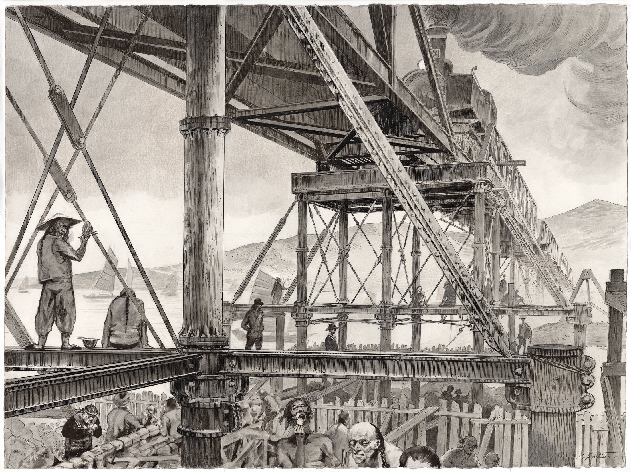 Outre des oeuvres personnelles, il nous présente des créations, réalisées à quatre mains, avec l'artiste chinois Li Kunwu., tous ces travaux étant en lien avec la construction de la ligne ferroviaire Pékin – Hankou.