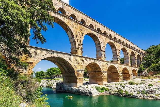 Un autre site majeur de la France romaine : le pont du Gard, qui est en fait la partie à l’air libre d’un aqueduc âgé de 2 000 ans, bâti par les Romains pour capter les eaux d’Uzès afin d’alimenter la colonie de Nîmes. Le site a été classé au Patrimoine mondial de l’Unesco, et réaménagé avec un grand parking, des espaces culturels et un remarquable musée.