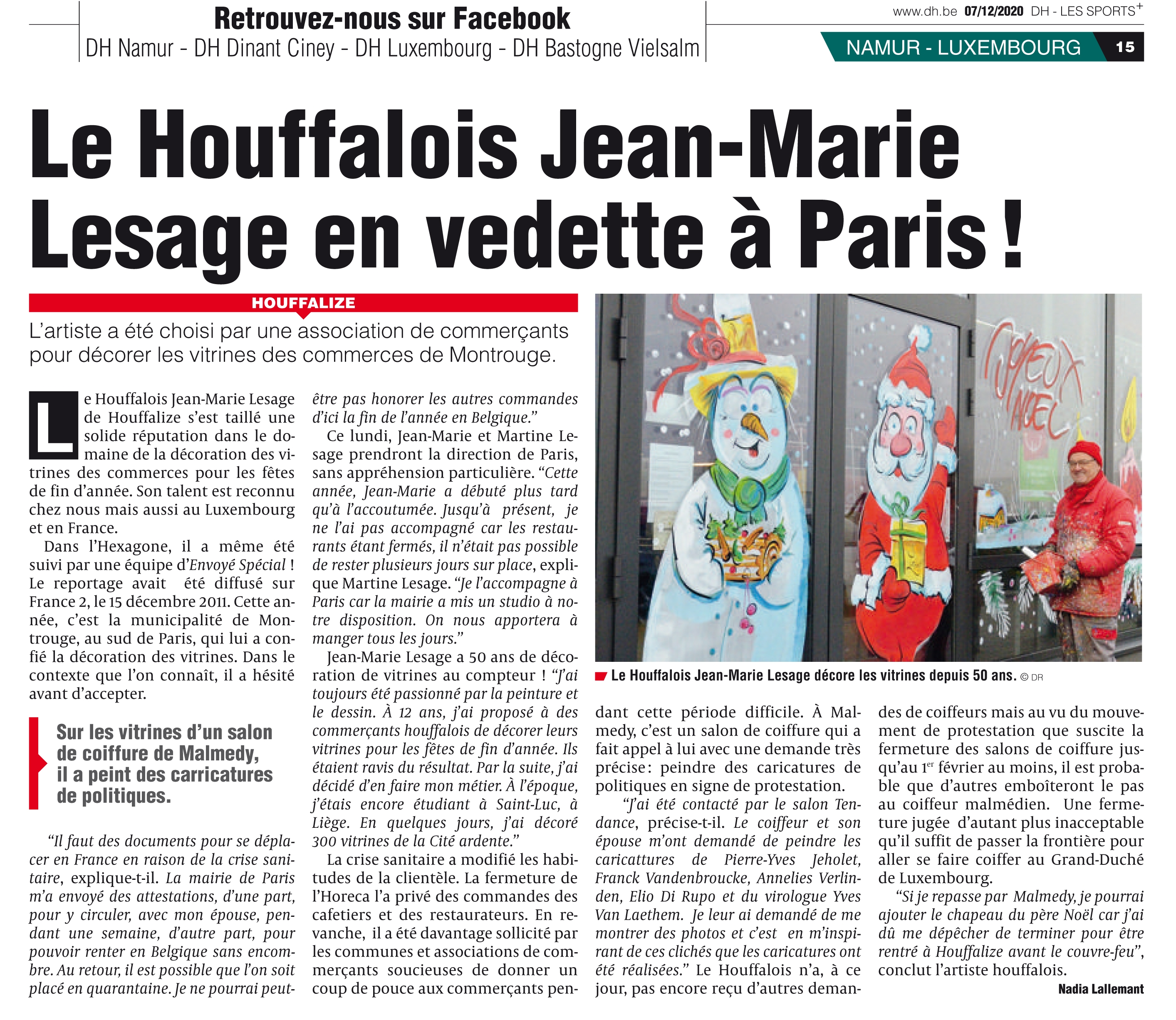 Avec l’horeca fermé, le duo a un peu moins de sollicitations cette saison. «En revanche, on a beaucoup de demandes de villes ou d’associations de commerçants qui payent pour qu’on décore toutes les vitrines. C’est le cas en France par exemple.» Des contacts ont aussi été noués avec d’autres communes belges «Mais comme on ne peut manger ou dormir nulle part en ce moment, c’est un peu compliqué».