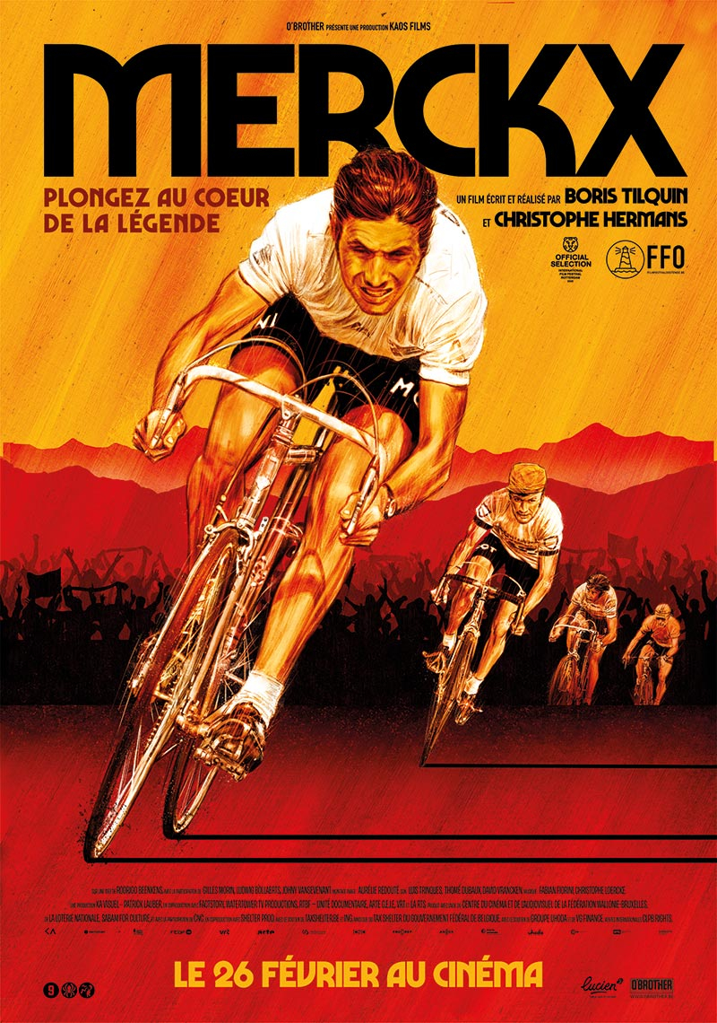 « Aujourd’hui, comment raconter Merckx et se distinguer des évocations le concernant déjà ? Christophe Hermans et Boris Tilquin répondent à la question en réalisant un pur film de cinéma, pensé pour le grand écran, surtout parce qu’il nous apprend à connaître un homme humble, touchant et élégant derrière l’image du héros sportif, en contrôle permanent. Le film est l’histoire d’un mouvement intense de tous les instants, d’un rythme de vie robotique, étudié, calibré pour atteindre des objectifs phénoménaux (record de l’heure et de victoires au Tour de France, …) et dans lequel les sentiments sont contradictoires, allant du haut vers le bas, de la joie à la tristesse, de l’amitié à la jalousie. Il capte aussi par instant l’humeur légère d’une Belgique vintage en noir et blanc ou en couleurs, mais aussi celle, plus dure et politique, de ses querelles linguistiques. Comme une traversée de notre histoire des années 1960-70, à coups de pédale, le nez dans le guidon, le sport et la sociologie ayant des choses à partager. »