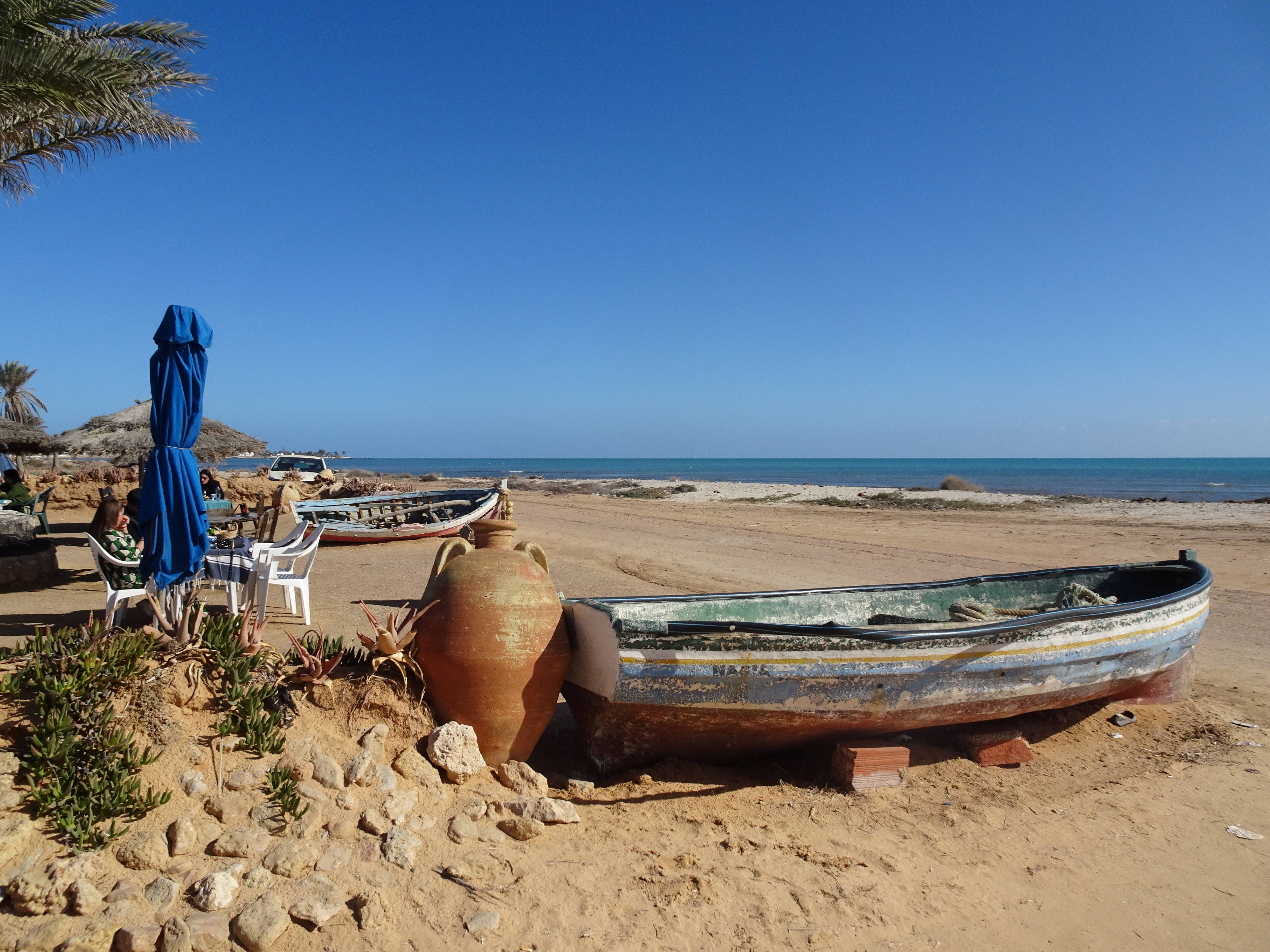 Le restaurant « La Lagune » lové sur une plage de sable blond, propose des grillades de daurade, loup de mer, crevettes, crevettes royales et seiches avec eau, chorba (soupe tunisienne exquise) et thé à la menthe pour un budget oscillant entre 20 et 50 dinars (7 et 17€). Un autre restaurant typique sur la plage, Chez Adel, propose un plat de 8 gambas grillées, frites et légumes tunisiens, une grande bouteille d'eau et un thé à la menthe pour 42 dinars, soit 14€.