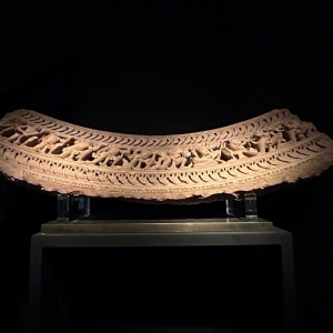 Côté asiatique, notons que la« Galerie Hioco » (stand 39), de Paris, nous propose, outre différentes sculptures du Bouddha, une « Frise aux onze musiciens » (XIè Siècle), aux poses stylisées, arborant cors, cymbales, flûtes et tambours, ce fragment architectural, de forme circulaire, en grès rouge, d’une longueur d’ 1,41 m, provenant du dôme d’un édifice religieux du Rajasthan ou du Madhya Pradesh, en Inde.