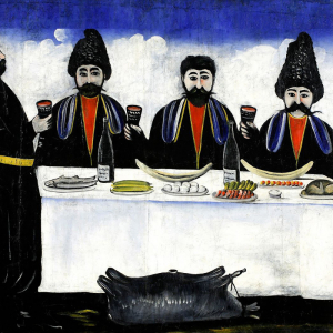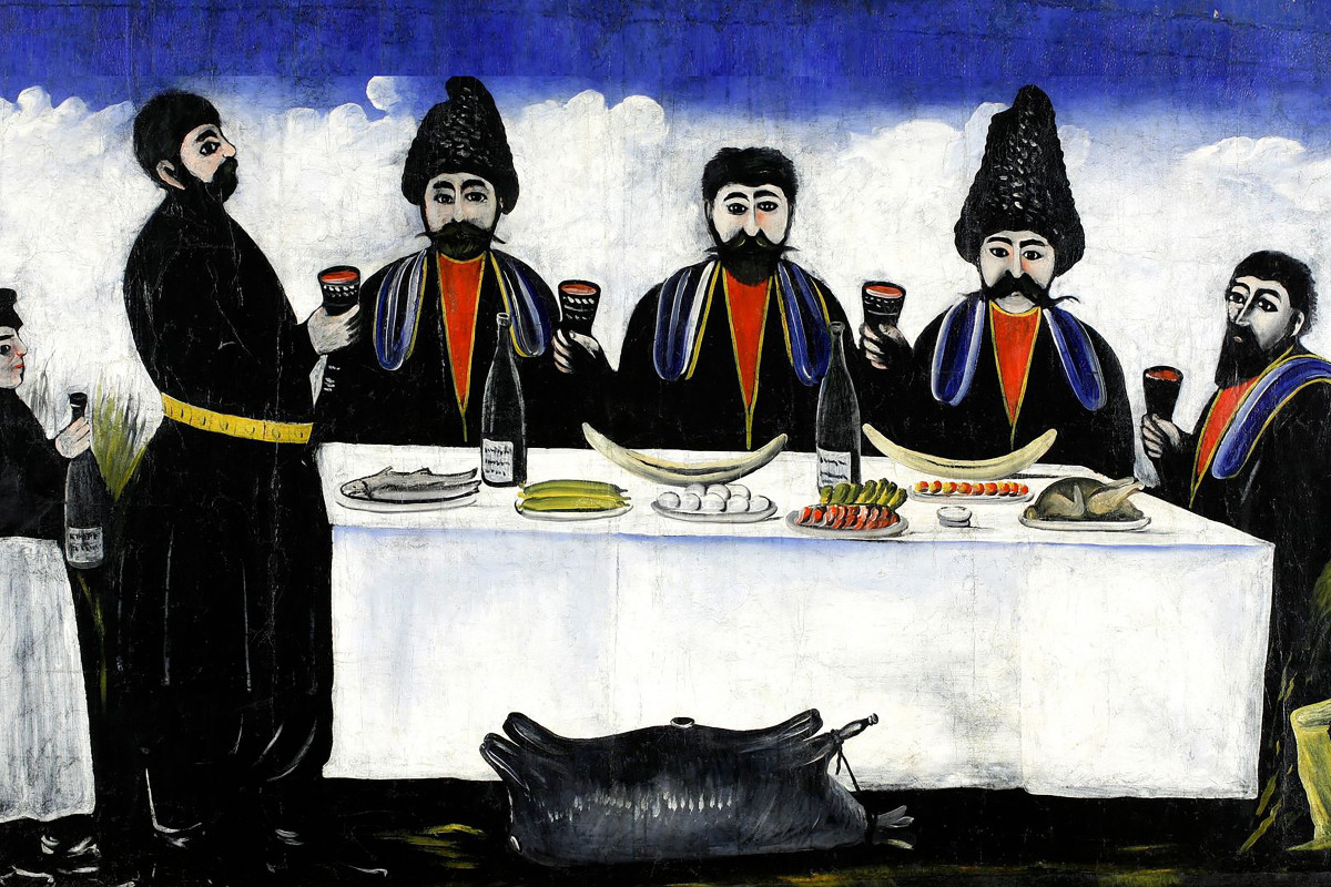 A souligner, la production du vin en Géorgie, depuis au moins 8.000 ans, lui qui, ayant dominé la vie sociale et économique, est largement présenté sur des objets usuels et de prestige. Comme le démontre une peinture de Niko Pirosmani (Nikolos Pirosmanachvili/1862-1918), le vin accompagne fort bien un art de la table ritualisé, à la cuisine raffinée, faisant partie, à part entière, du patrimoine géorgien.