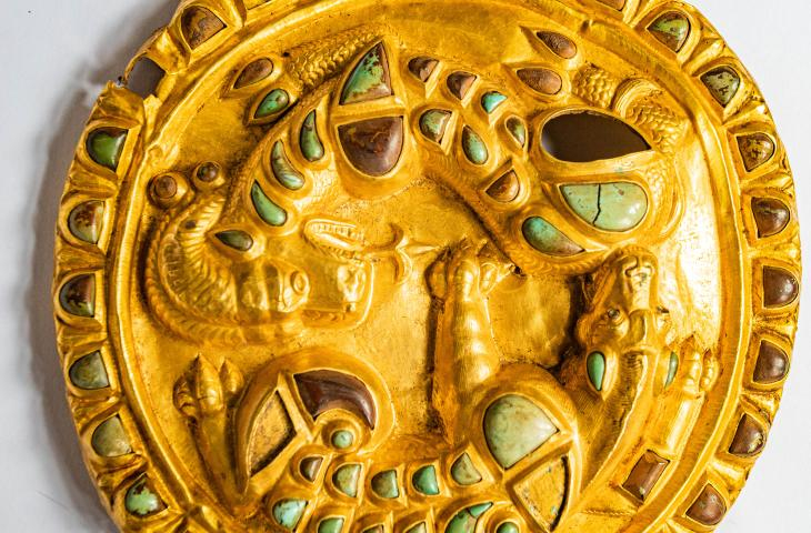 De même, nombre d’objets révèlent l’influence des différents empires, déjà cités, sur une Géorgie féodale, divisée en deux royaumes, Colchide & Ibérie, des médaillons, panneaux et objets divers nous présentent des symboles contradictoires de ces différents pouvoirs.
