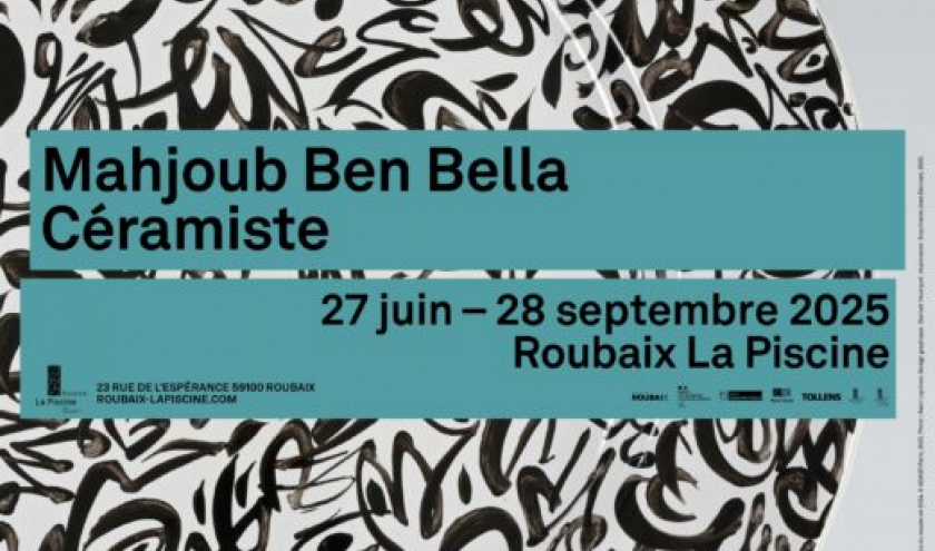 Voici l’occasion de retrouver Mahjoub Ben Bella, artiste aux multiples terrains de jeux, qui jeta l’ancre à Tourcoing, une ville qu’il appréciait tant. Ses œuvres résultent de la fusion entre deux cultures : celle du Nord de la France, dont le terroir constitue un point de départ à ses créations, et celle de son Algérie natale, incarnée par la calligraphie arabe, ce motif-signature se déployant avec élégance sur ses tableaux & vêtements, jusqu’à en recouvrir totalement la surface.