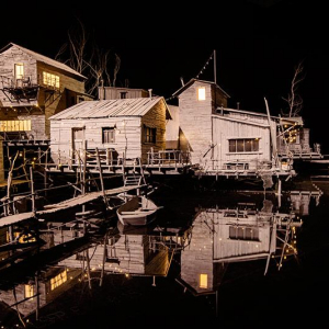 Vient ensuite une salle à l’atmosphère particulière, nous présentant, prêtée par le « Kröller-Muller Museum », une cité lacustre, « L’Implantation » (2016), reproduite à une échelle pas trop réduite, avec ses chalets, ses pontons, ses barques, ses filets de pêche et ses guirlandes lumineuses, évoquant une scène nocturne, la lumière jaillissant par moments, nous aidant à prendre des photos (obligatoirement sans flash). Sommes-nous aux Philipinnes ou à Maracaïbo, au Vénézuela ?