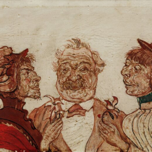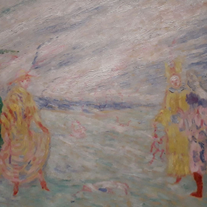 Des portraits de ses mécènes et des œuvres fantasmagoriques, comme « Pierrot et les Squelettes » sont exposés, nous rappelant, par ailleurs le désir de James Ensor de s’échapper des moqueries de sa jeunesse, utilisant la satire et le grotesque pour se moquer lui-même de l’humanité.
