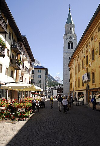 Cortina d'Ampezzo est une commune de la province de Belluno en Vénétie (Italie) et station de ski des Dolomites ayant accueilli les Jeux olympiques d'hiver de 1956 La ville est située à 1 210 m d'altitude, au cœur des Dolomites. Depuis le 26 juin 2009, les Dolomites sont inscrites au patrimoine mondial de l'UNESCO. La dolomie, roche calcaire, s'irise de rose au crépuscule du soleil d'hiver.
