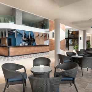 Le Riu Buenavista, qui propose le service Tout compris 24 heures de RIU, rouvre avec une nouvelle image contemporaine et fraîche, en plus d’être aujourd’hui plus efficace et accessible grâce à une transformation radicale de ses intérieurs et espaces extérieurs. C’est le cas de la réception, désormais plus vaste, lumineuse et moderne, qui fait office de grande place centrale autour de laquelle tourne toute la vie de l’hôtel, ainsi que la terrasse du restaurant principal, la nouvelle table italienne et la scène accueillant les spectacles nocturnes.