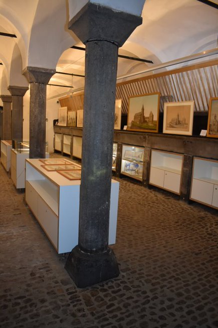 Quittant le bâtiment central, admirant, au passage, le splendide jardin « à la française », nous nous retrouvons dans les anciennes écuries, qui abritent de nombreuses représentations contemporaines des édifices religieux namurois et des différents quartiers, peints par Franz Kegeljan. Avec quelques aquarelles, réalisées en 2021, nous pouvons confronter toute l’évolution de Namur, du XIVè jusqu’au XXIè siècle.