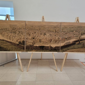 Enfin vient l’ancienne « chapelle des bateliers », où sont rassemblés les panoramas réalisés depuis la citadelle. Au centre de la pièce, une table est à notre disposition avec une reproduction des planches du dessin préparatoire, sous forme de puzzle à reconstituer, une manière ludique de terminer notre parcours.