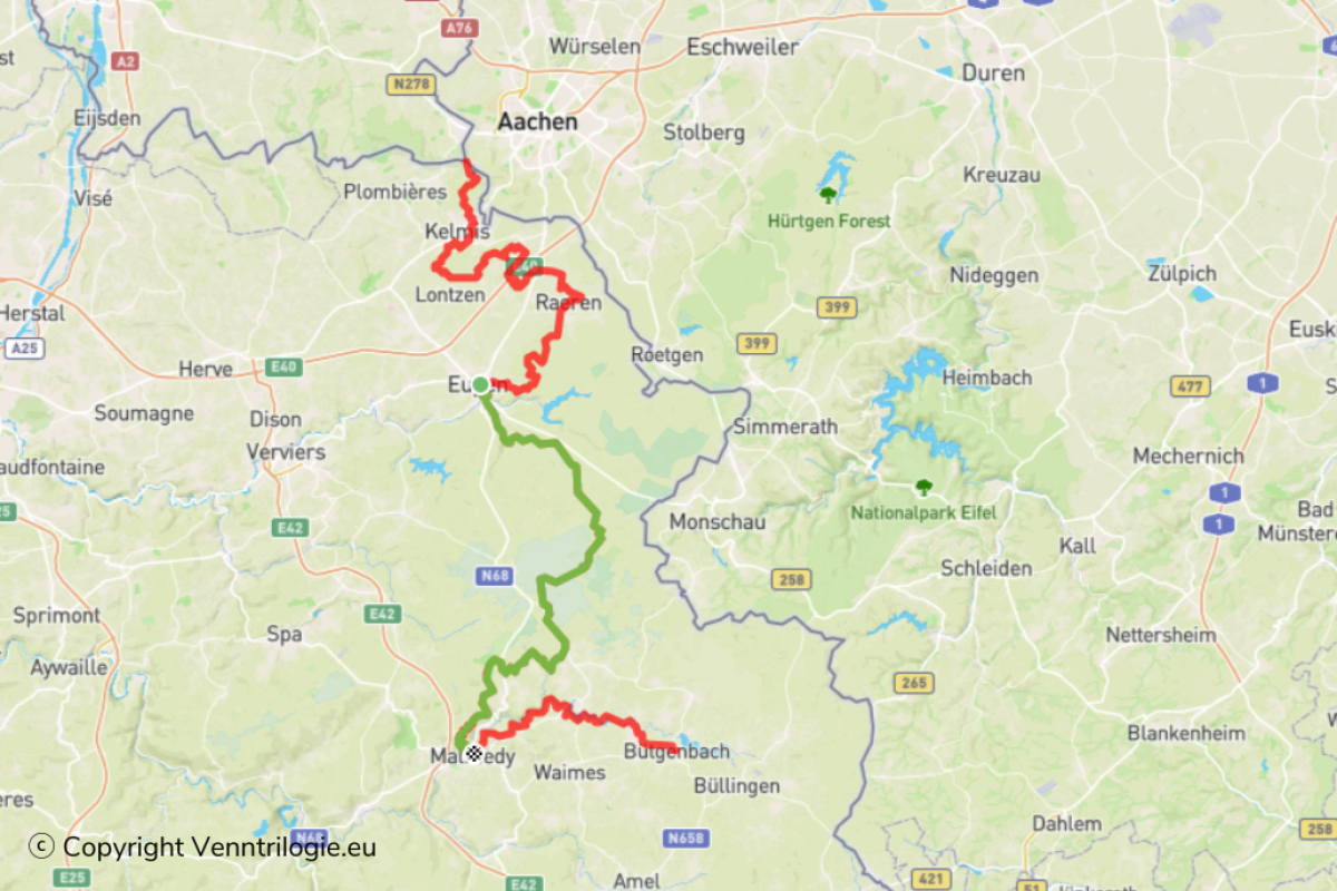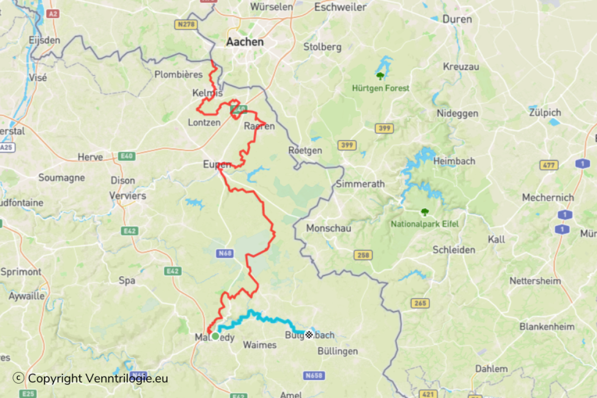S’y présentent deux étapes journalières : des Trois-Frontières à Eynatten (24 km), puis d’Eynatten à Eupen (18,9 km).