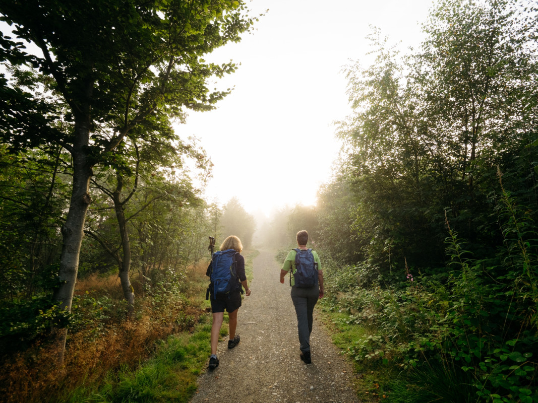 Parcourez ce paysage unique en deux étapes journalières : d’Eupen au Signal de Botrange (24,8 km) et du Signal de Botrange à Malmedy (19,7 km).