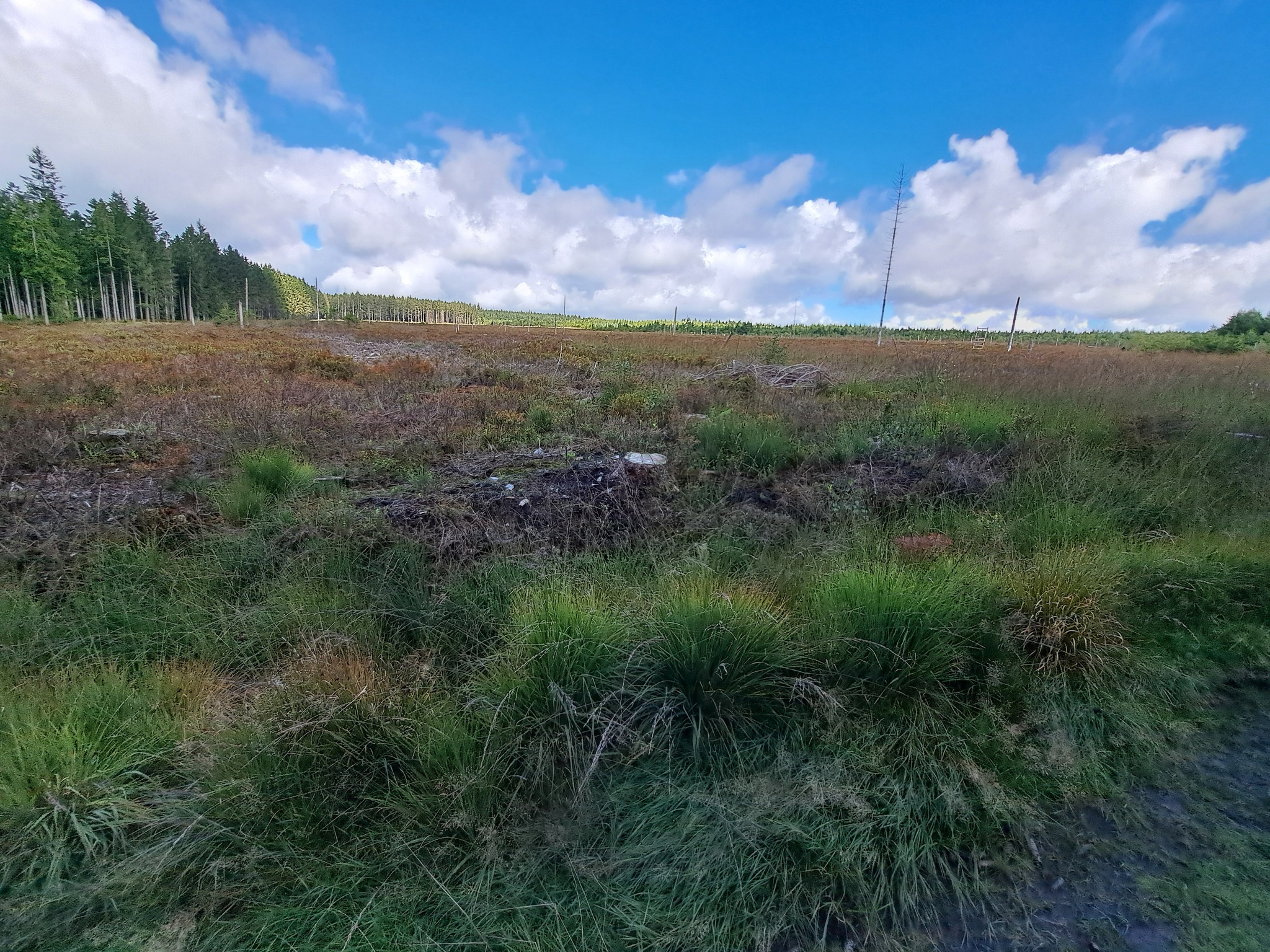 Toutes les difficultés ont été rassemblées pour ce parcours et quand j'ai reçu un coup de fil (d'une groupie) et vu enfin un chemin forestier en fagnes, j'ai avancé à grands pas mais le doute est rapidement arrivé par l’absence d'indications ; stupide ou borné, je n'ai pas encore la réponse. J'ai continué et c'est là que je me suis dit qu'il y aurait bien un coupe-feu à gauche qui m'amènerait vers Botrange, Heureusement, au bout de 45 min de marche, j'ai croisé un cycliste qui m'a dit que la seule bonne option était de faire demi-tour. " Voulez - vous que je vous prenne sur le vélo, on peut essayer " me propose, trop gentil, ce cycliste de Baelen. Mais je me suis remémoré la scène de Bourvil et De Funès et je suis reparti d'où je venais. Les 2 batteries de mon téléphone à plat, une ampoule à soigner, un détour de 11 km et suis arrivé à Botrange au bout de 36 km dans le même état que mes accus téléphoniques.