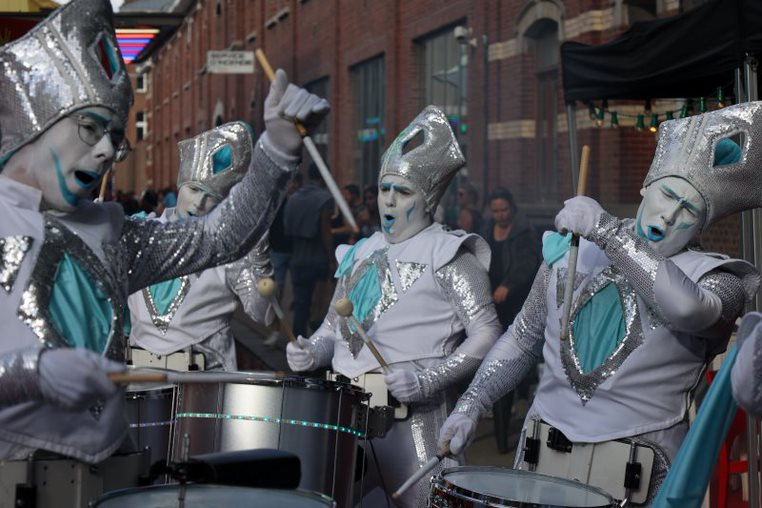 Cette année cette fanfare, nous venant de Lille, avait aussi revêtu l'image, par le grimage, du monde de l'étrange.