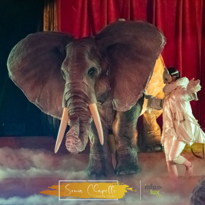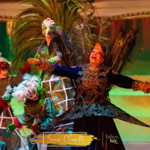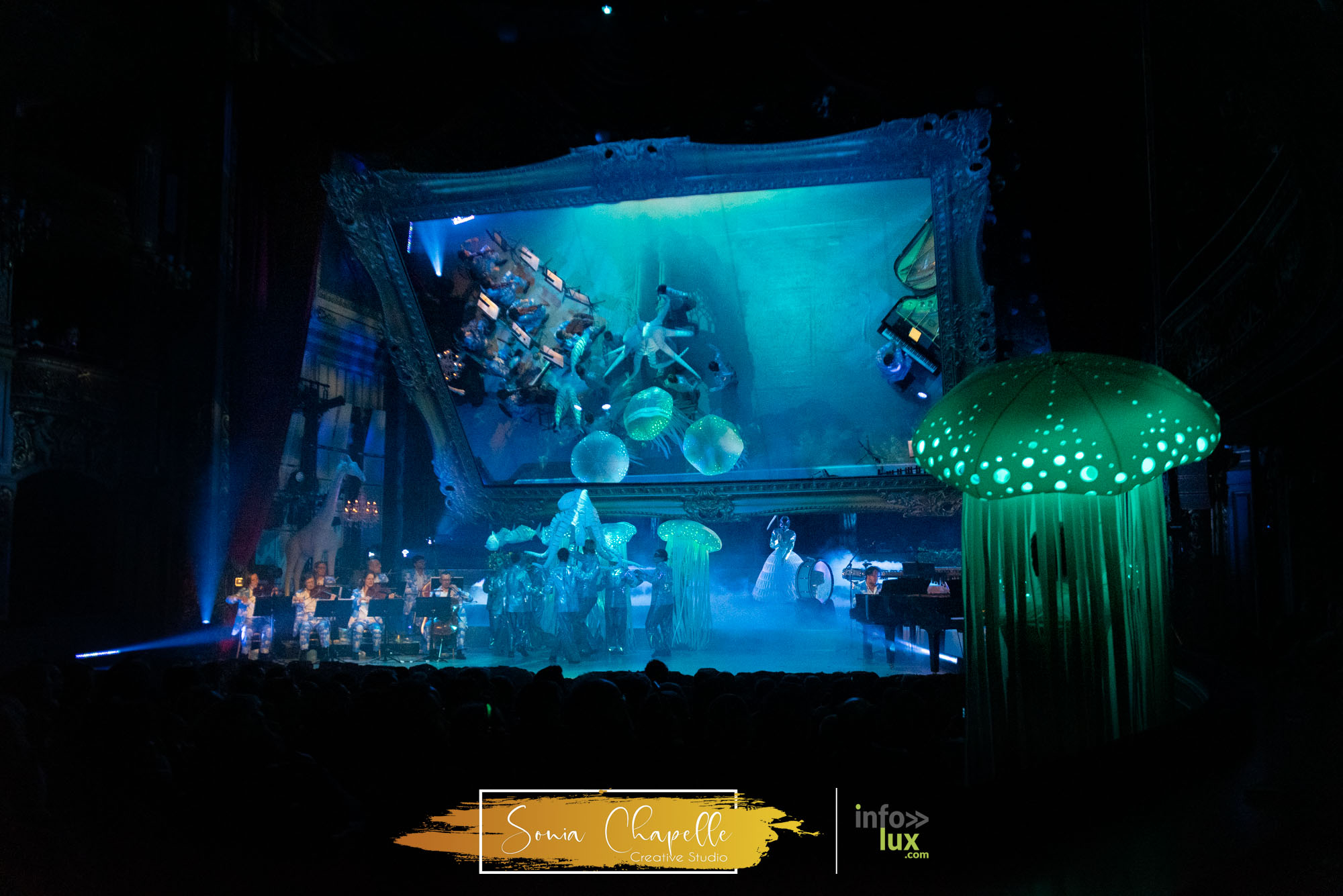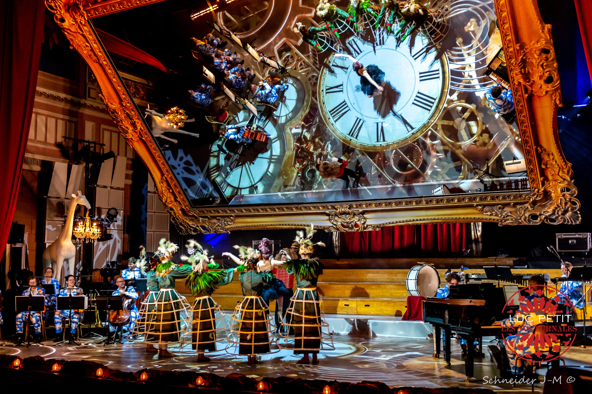 Véritable alchimiste des arts de la scène, alliant toutes les disciplines et les moyens techniques les plus innovants, afin de présenter des atmosphères surprenantes, toujours au service de sa démarche artistique et humaine, Luc Petit, grâce, au centre de cette mise en scène, à un miroir géant, qui – tout en réfléchissant les 16 tableaux de ce spectacle haut en couleurs – nous permet de voir et d’entendre le créateur original, en 1886, de ce formidable bestiaire, le compositeur français Charles Camille Saint-Saëns, auteur de douze opéras. Ainsi, ce dernier pu agrémenter le « Mardi Gras » d’un ami violoncelliste, ce qui est bien de saison en ce congé scolaire autrefois nommé « Congé du Mardi-Gras ».