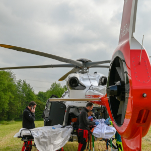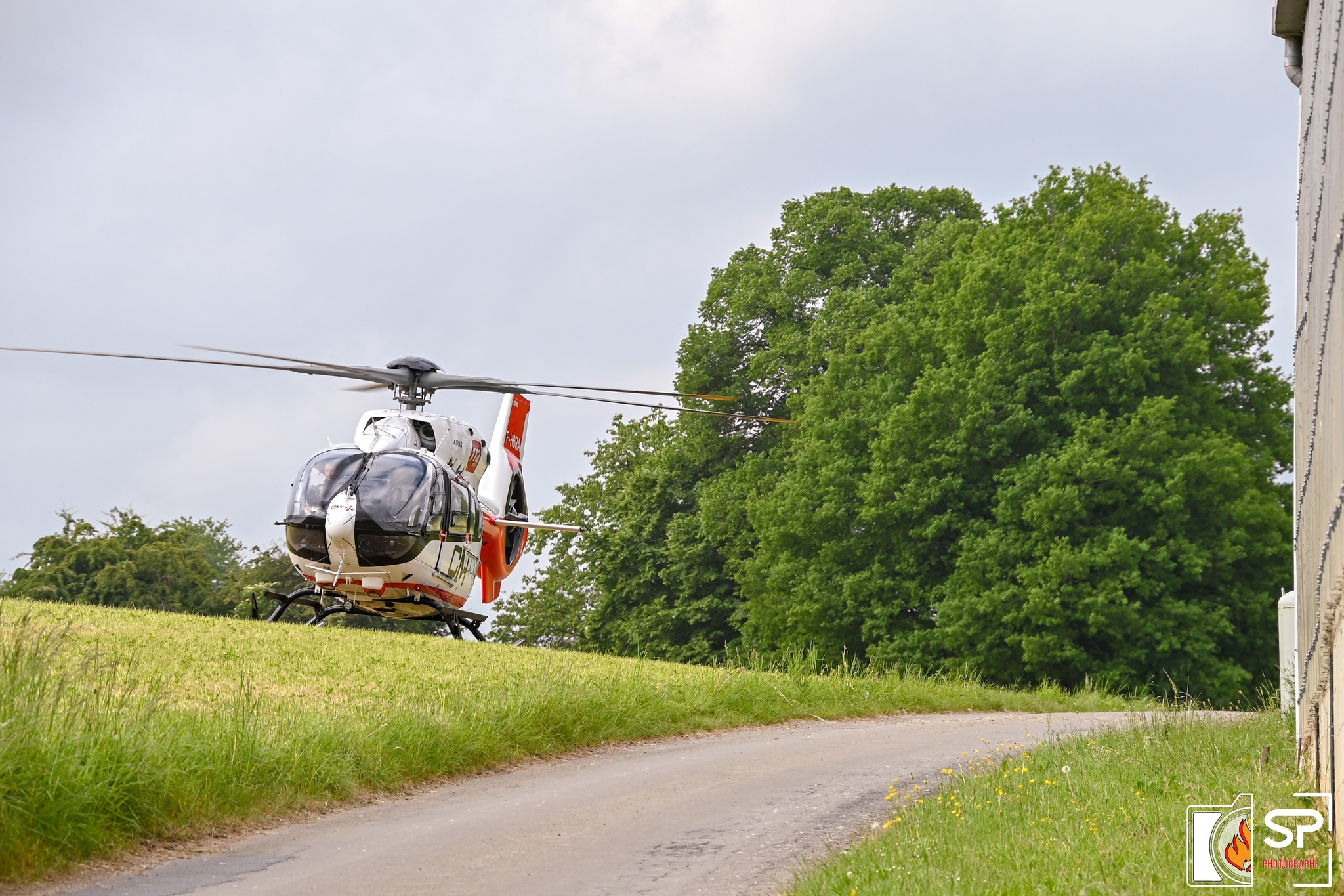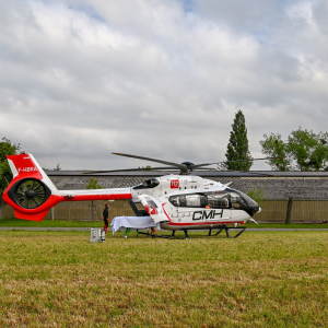 Après quelques minutes, décision est prise de l'emmener en hélicoptère vers le CHU.
