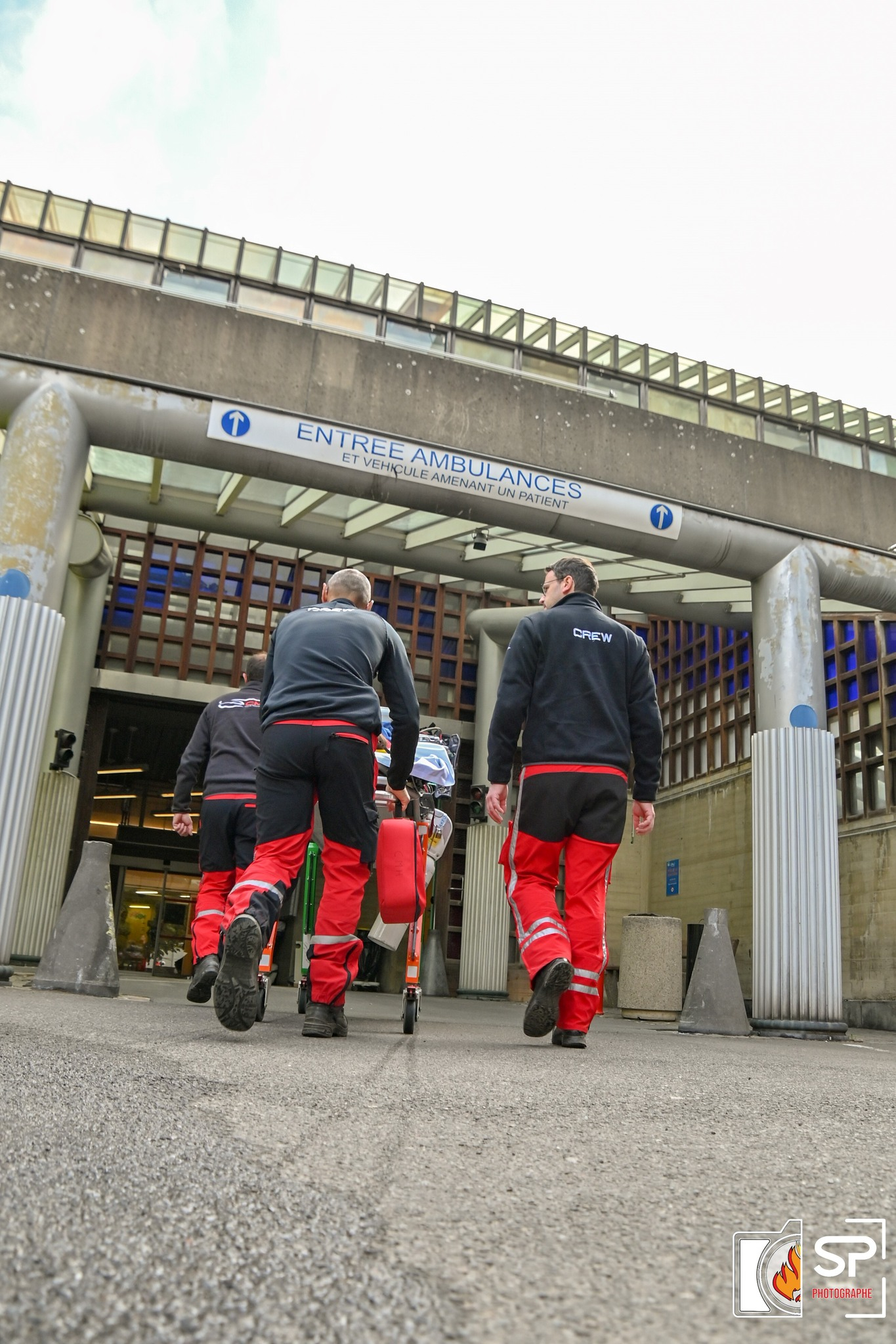 Je suis avec Antoine le pilote, Olivier l'infirmier urgentiste et Sander le médecin urgentiste