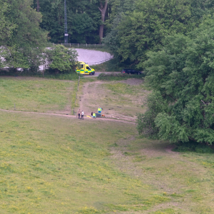 Le vol est court et on arrive sur la zone, on découvre du ciel les ambulanciers à côté de la personne.