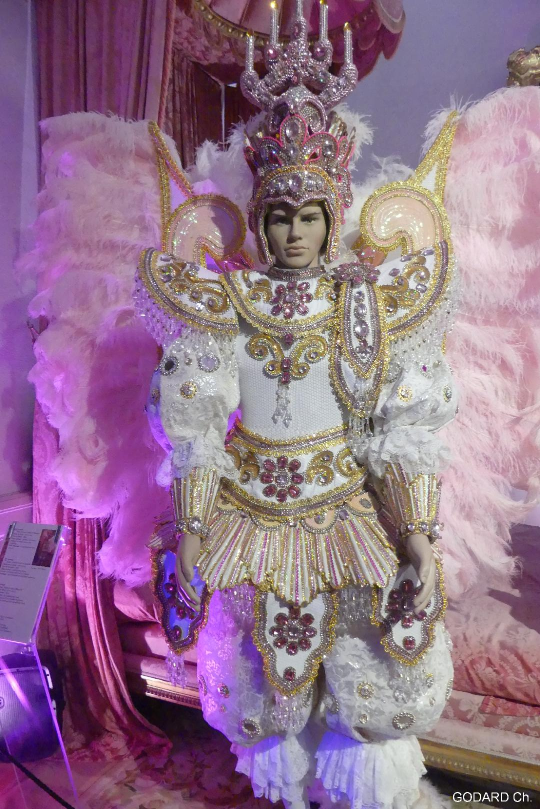 Soulignons le travail artisanal exceptionnel, digne de la haute couture, réalisé à la main, utilisant broderies, pierres, plumes, strass, tissus, ..., que cette exposition nous permet d'admirer de très près.
