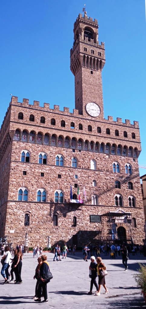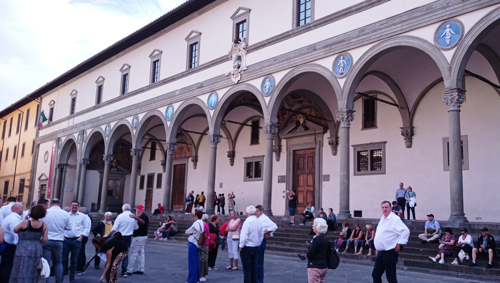 Le jeudi 6 octobre en soirée, 104 personnes prenaient la route de l’Italie pour un long voyage qui ne vit son terme que le lendemain à 13 heures. Fourbus mais bien décidés à passer de bons moments ensemble, tous prirent d’emblée la direction du « Castel del Trebbio », sis à une trentaine de kms de la capitale toscane. Grand soleil, température de rêve, visite des caves,… et dégustation des produits du domaine eurent tôt fait de stimuler les plus calmes des participants qui allaient offrir une première prestation dans la cour du château autrefois fréquenté par les Médicis. Ce n’était qu’un début, mais tous et toutes comprirent que « quelque chose » allait se produire. En début de soirée, une première incursion dans le centre historique de Florence amenait la troupe dans un restaurant local pour un premier repas. Très vite, les choses prirent un tournant musical déjà inoubliable avec l’interprétation en pleine luit florentine devant le Palazzo Vecchio et le célèbre David de Michelange, de notre « Nut du May ». Nous y étions et, comme dirait l’(autre, nous allions y rester un bon moment puisque, dès le lendemain, une visite plus globale du centre historique se concluait par un concert en plein air sur la très belle place de la « Santissima Anninziata ». A cette occasion, les Malmédiens rencontraient pour la première la chorale croate « Garmin » en provenance de la superbe ville côtière de Rovinj ou Rovigno. Une joute très amicale vit chacune des chorales se répondre l’une l’autre par un chant de circonstance. Mais les estomacs criaient famine et le repas de midi, fait de charcuteries, fromages et autres mets typiques, fut apprécié de tous.