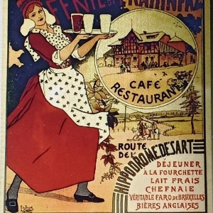 Non datée, l’affiche originale est cependant antérieure à 1897, année du décès d’Edouard Duyck (1856-1897), l’un des graphistes qui l’a réalisée. Associé à Adolphe Crespin (1859- 1944), ils figurent parmi les pionniers belges de la création d’affiches illustrées, monochromes à l’origine. Crespin et Duyck sont tous deux bruxellois et peintres de formation. Ensemble, ils vont réaliser des travaux décoratifs et des affiches, activités certainement plus rentables que l’art pictural classique.