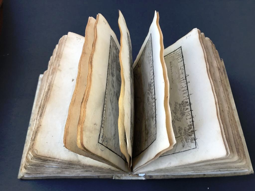 Ce recueil d’un aspect relativement quelconque est l’une des pièces majeures du musée. Il contient 425 dessins, de Spa et ses environs, attribués à Charles-Denis de Beaurieux (1653-1741), artiste déjà évoqué dans la capsule n°12.