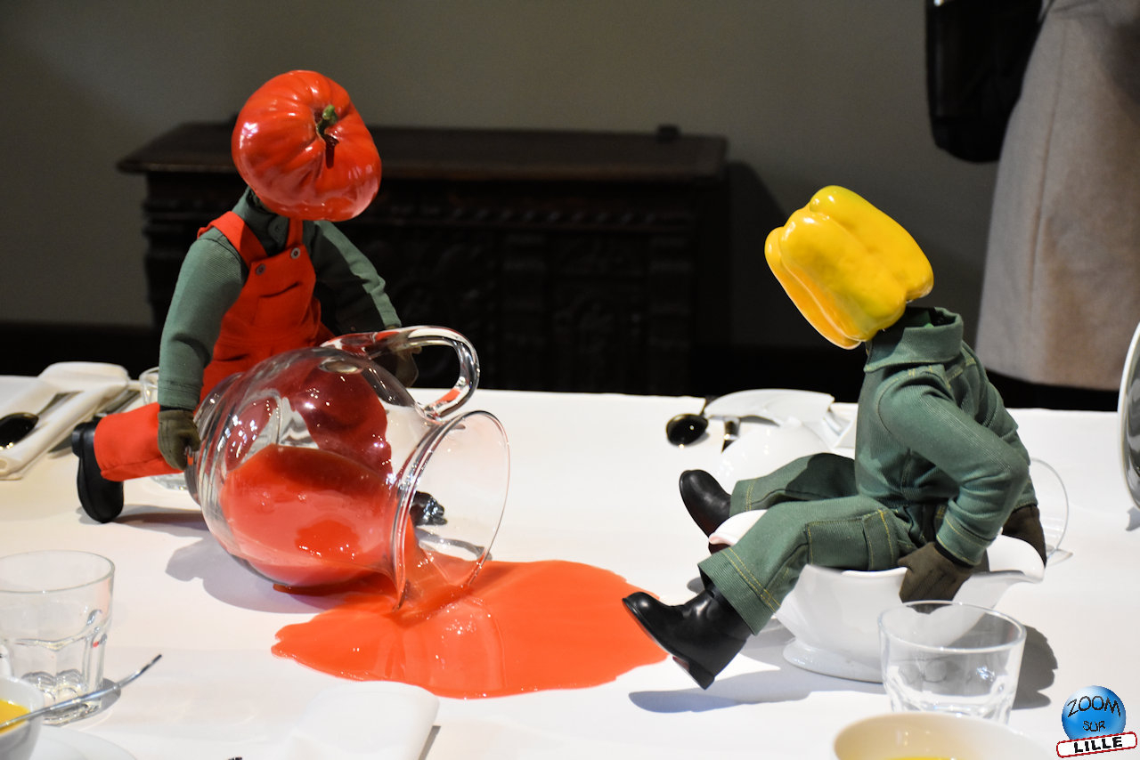 Tout au long de notre parcours, nous profitons d’un dialogue entre des oeuvres contemporaines – comme les « Minitos » et les « Nanitos », créés par un artiste plasticien français, déjà invité, par le passé, par l’association « Lille 3000 », travaillant aujourd’hui à Marrakech, Jean-François Fourtou (°Paris/1964) – et le mobilier, les peintures, …, de la collection permanente du« Musée de l’Hospice Comtesse », vivant, ainsi, une véritable expérience immersive et sensorielle, pour explorer différemment notre place dans le monde et éveiller, ou réveiller, le lien profond qui unit l’homme à la nature.