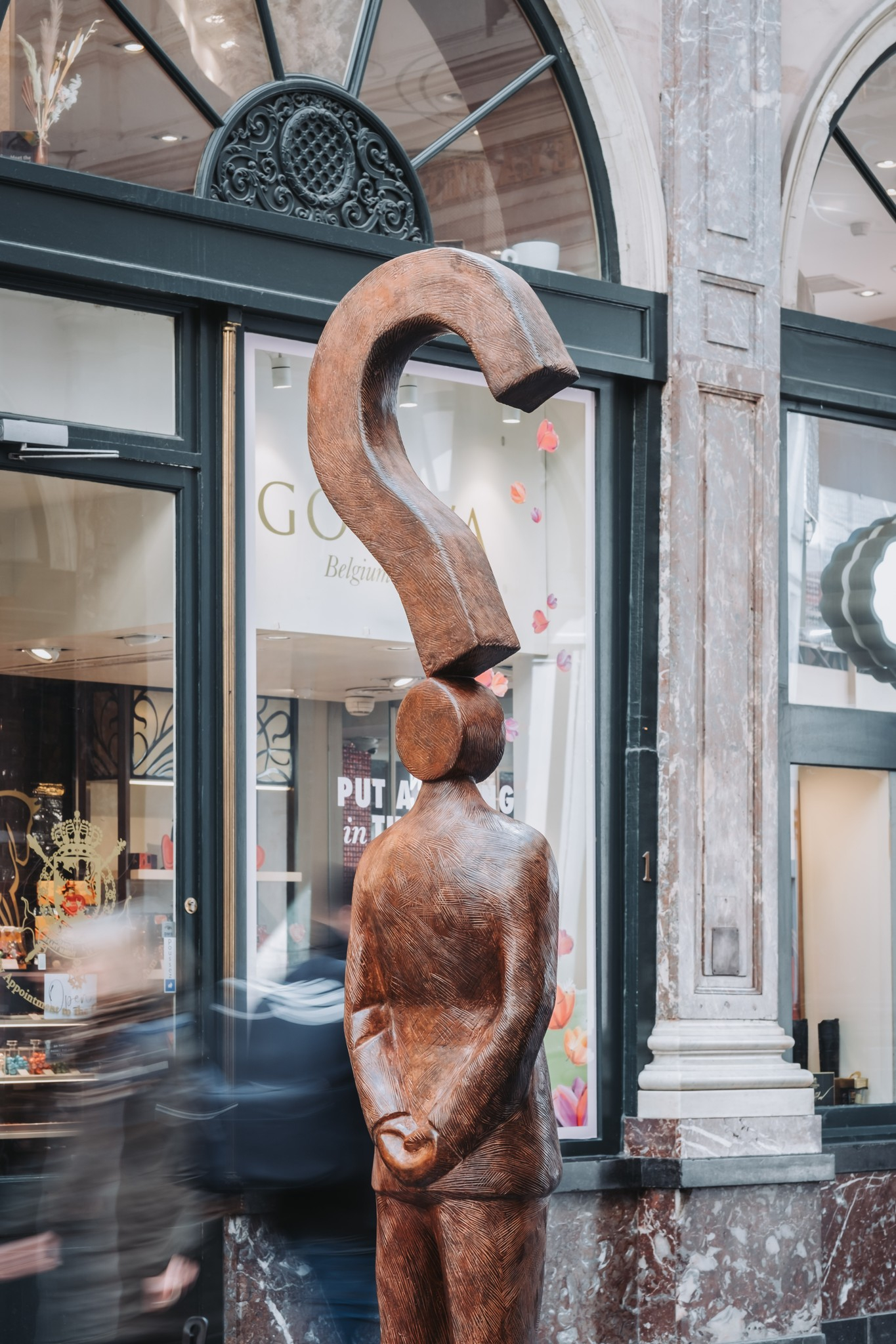 Descendant par le Mont des Arts, nous atteignons les « Galeries Saint-Hubert », où nous découvrons une série de sculptures (1996-1999), intitulée « L’Année des Pensées ».
