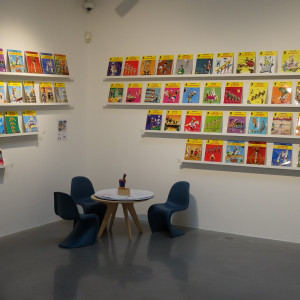 Aussi, pour nous replonger dans l’œuvre foisonnante de « Morris », un espace lecture est aménagé, nous proposant des albums, édités en quatre langues (allemand, anglais, français & néerlandais).