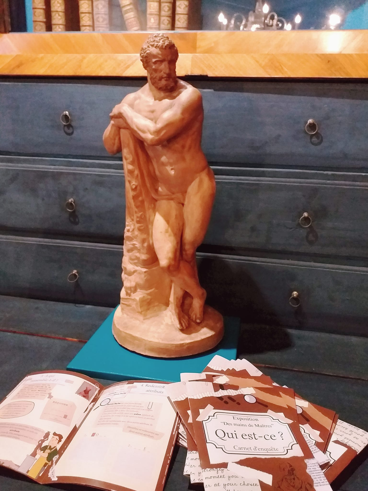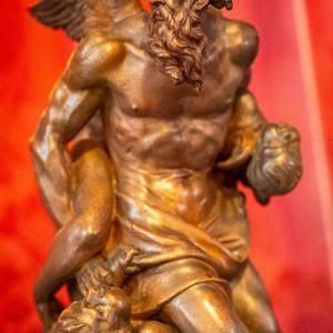 Egalement, nous découvrons « Hercule », prêté par la « Fondation AHN », présenté sur un secrétaire-cabinet ( XVIIIè siècle), et, provenant des collections de la « Fondation Roi Baudouin » « Cronos dévorant ses enfants », deux sculptures en terre cuite, avec un socle en bois, de Jacques Richardot (1743-1806).