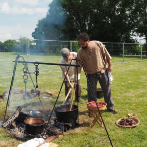 - l’ « Arduenna Teuta : fabrication de cotes de mailles, présentation de l’équipement militaire celte (boucliers, épées, lances), peintures sur boucliers, techniques de filage & de tissage de la laine, de pêche à l’âge du fer, d’allumage du feu, d’hygiène, …