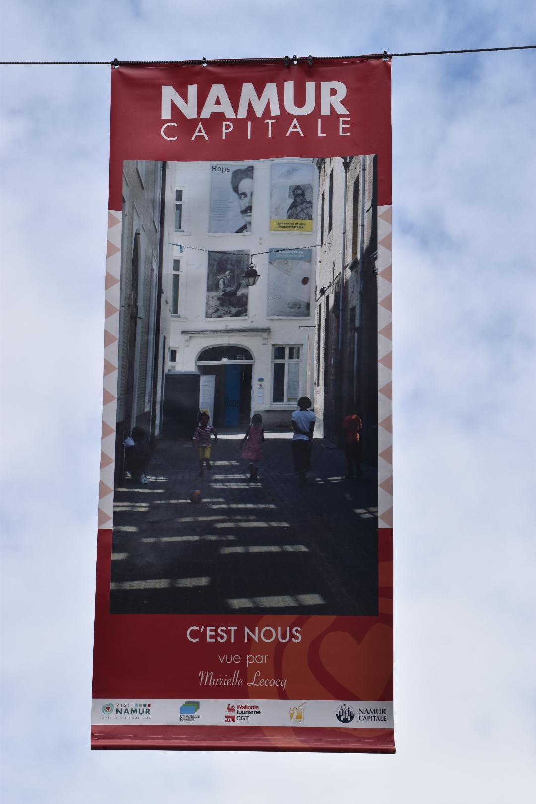 Lors de tout séjour à Namur, profitant de cette occasion de pouvoir librement circuler en rues, en n’oubliant pas que le port du masque est désormais obligatoire en certains lieux extérieurs (dans le cadre des décisions prises ce dernier jeudi 23 juin), prenons donc le temps de lever les yeux vers ces oriflammes mettant à l’avant tout ce qui nous offre cette Ville, des plus accueillantes, chère à François Bovesse et à Félicien Rops, sise au confluent de la Sambre et de la Meuse.