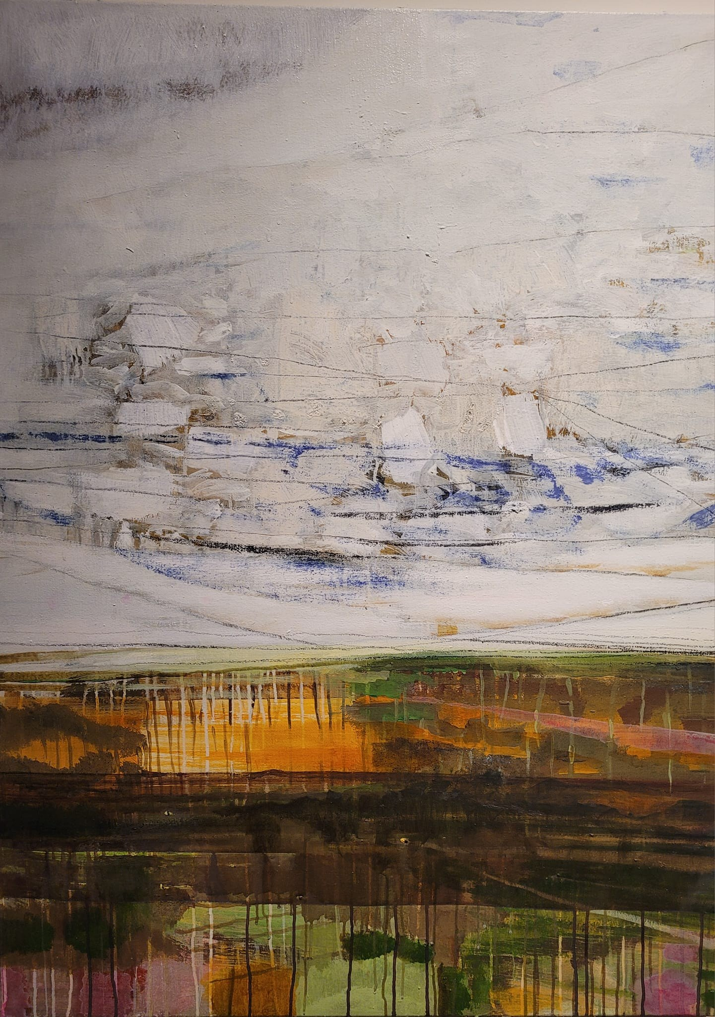 monde blanc où l’histoire vient se peindre dans ses stigmates au travers des couches de peinture