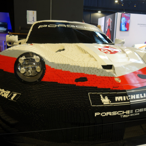Egalement présente une « Porsche » dont la moitié de la carrosserie est réalisée … en briques « Légo », attirant nos enfants au sein d’un espace prévu à leur attention, avec la possibilité de créer ce qu’ils veulent avec ces bien connues briques danoises, de colorier des dessins de voitures « Porsche », ou, pour les ados, de se mettre au volant de l’un des deux simulateurs, les voitures exposées juste à côté étant des modèles de courses automobiles.