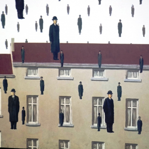 Associé au surréalisme, René Magritte (1898–1967) est le maître des énigmes. Connu pour ses toiles qui fonctionnent comme des rébus ou des métaphores, il met en évidence, avec humour et poésie, notre difficulté à faire coïncider la réalité du monde avec nos images mentales, en somme ce qui compose l’esprit humain. Magritte a développé un véritable alphabet pictural en usant de motifs récurrents : la pomme, l’oiseau, l’homme au chapeau melon, les corps morcelés… Ses images sont souvent cachées derrière ou dans d’autres images, alliant deux niveaux de lecture possibles, le visible et l’invisible.