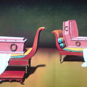 Le dadaïsme, et la peinture métaphysique de Giorgio de Chirico, produisent sur Magritte un bouleversement.. En 1926, Magritte débute son parcours dans l’orbite du surréalisme, rencontre André Breton, Paul Éluard, Max Ernst et Salvador Dalí.