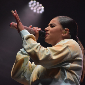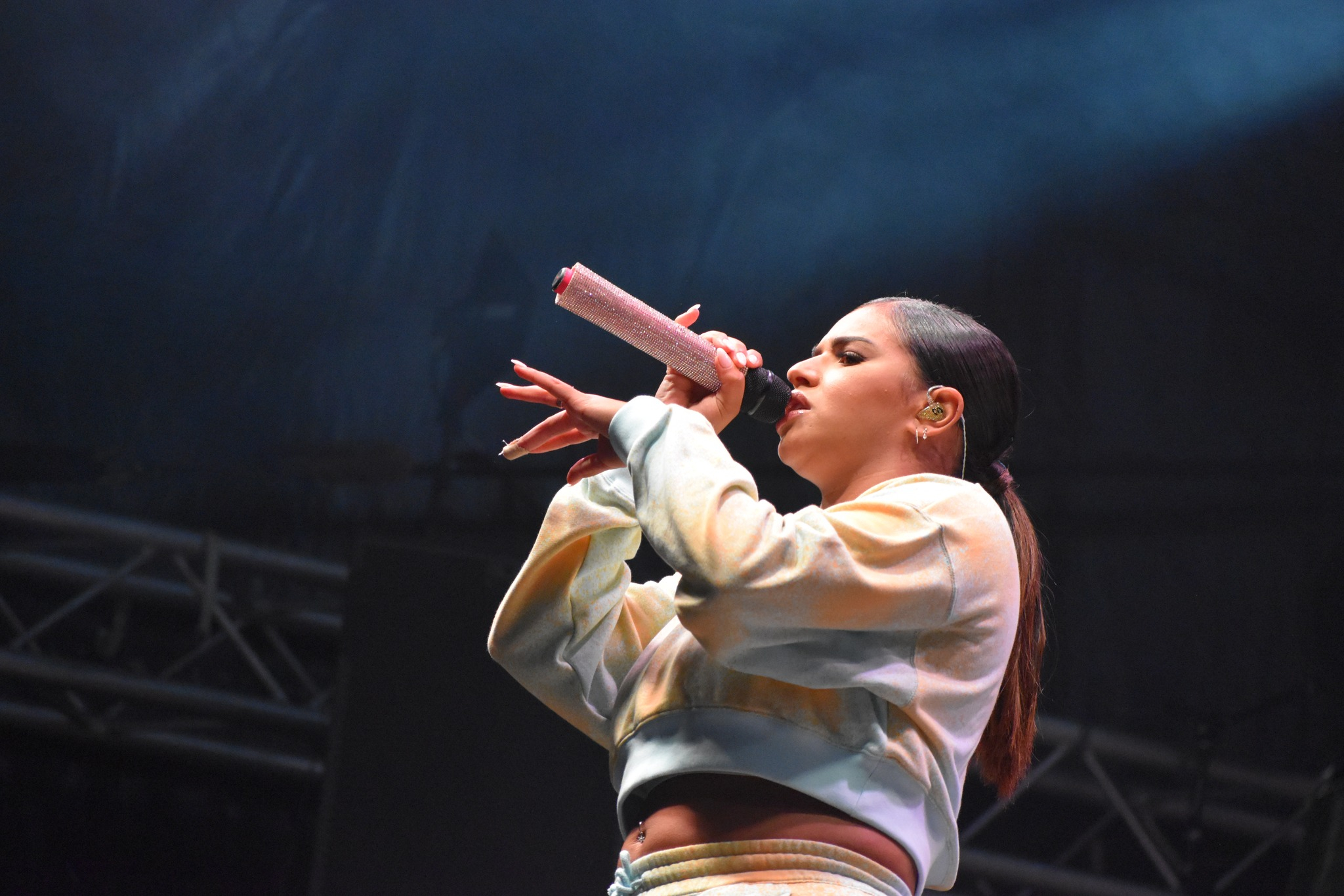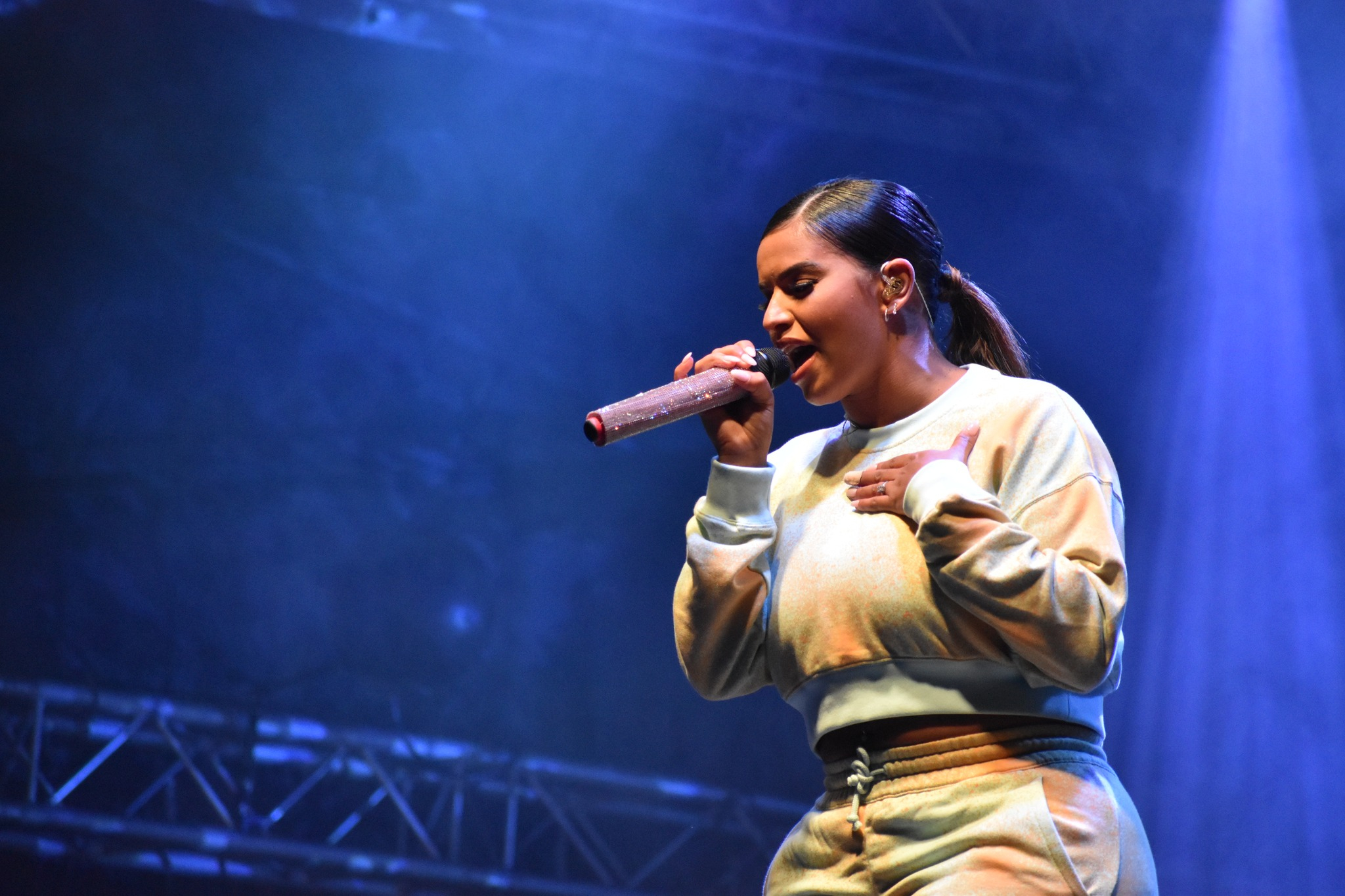 *** De l' "Esplanade", retour au "Théâtre de Verdure", à 22h15, pour applaudir la chanteuse française, d’origine marocaine Imen Es (née Imen Essrhir/°Sevran/1998), qui se produisit face à des milliers de portables allumés, remplaçant les briquets d’autrefois, le public entonnant ses chansons, avant même son arrivée, tant attendue, sur la scène.