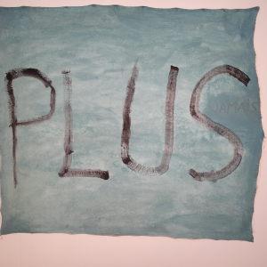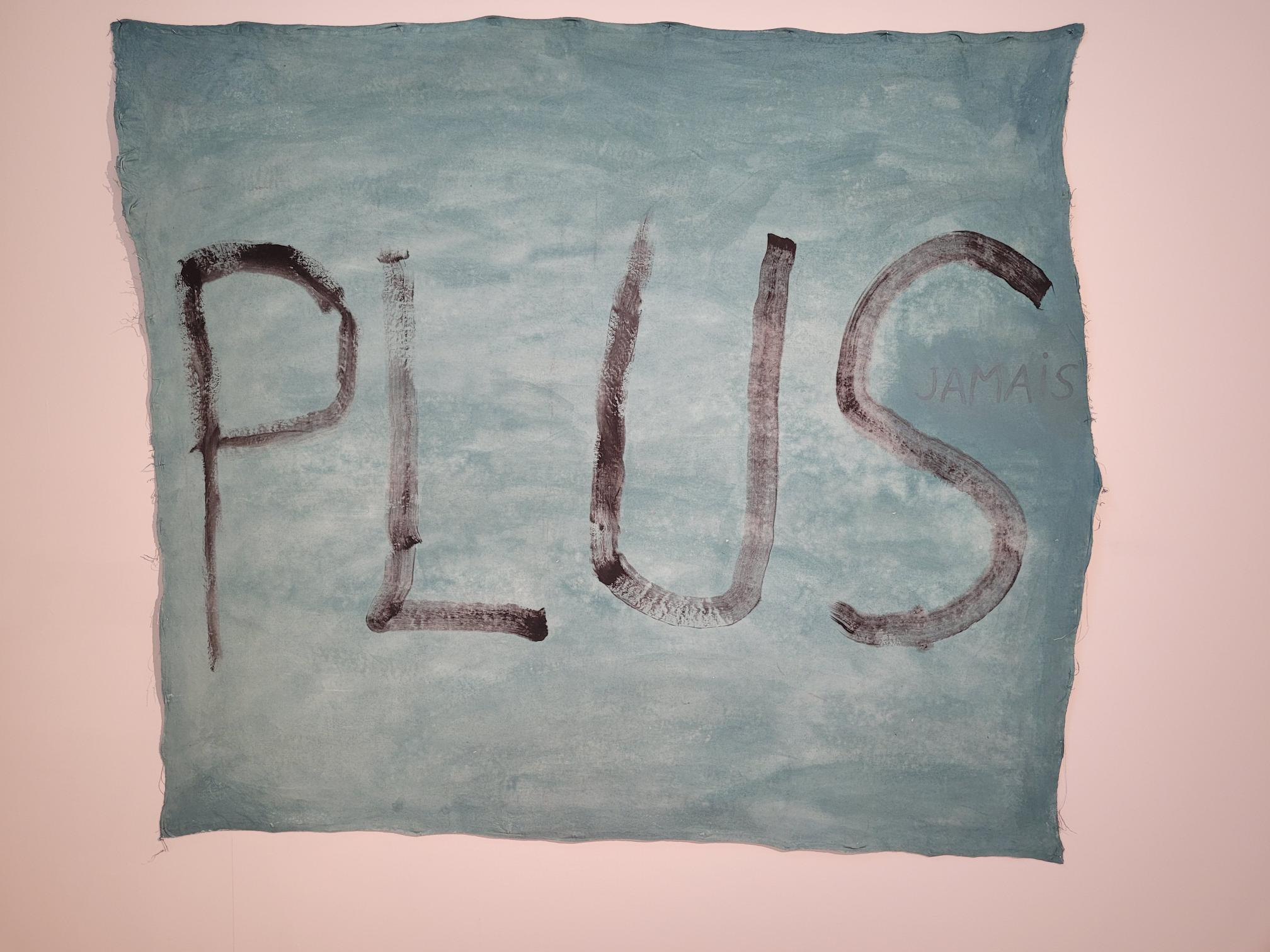 … A l’exception d’une seule, sur laquelle la signature est apparente, selon le choix de la commissaire de l’exposition qui a voulu accrocher l’œuvre à l’envers pour mettre en évidence le fait que Pol Piérart peint au sol et montrer le côté granuleux dû au contact du sol et des coups de pinceaux, et faire ainsi le lien avec les scénographies de Jean-Luc Petit.