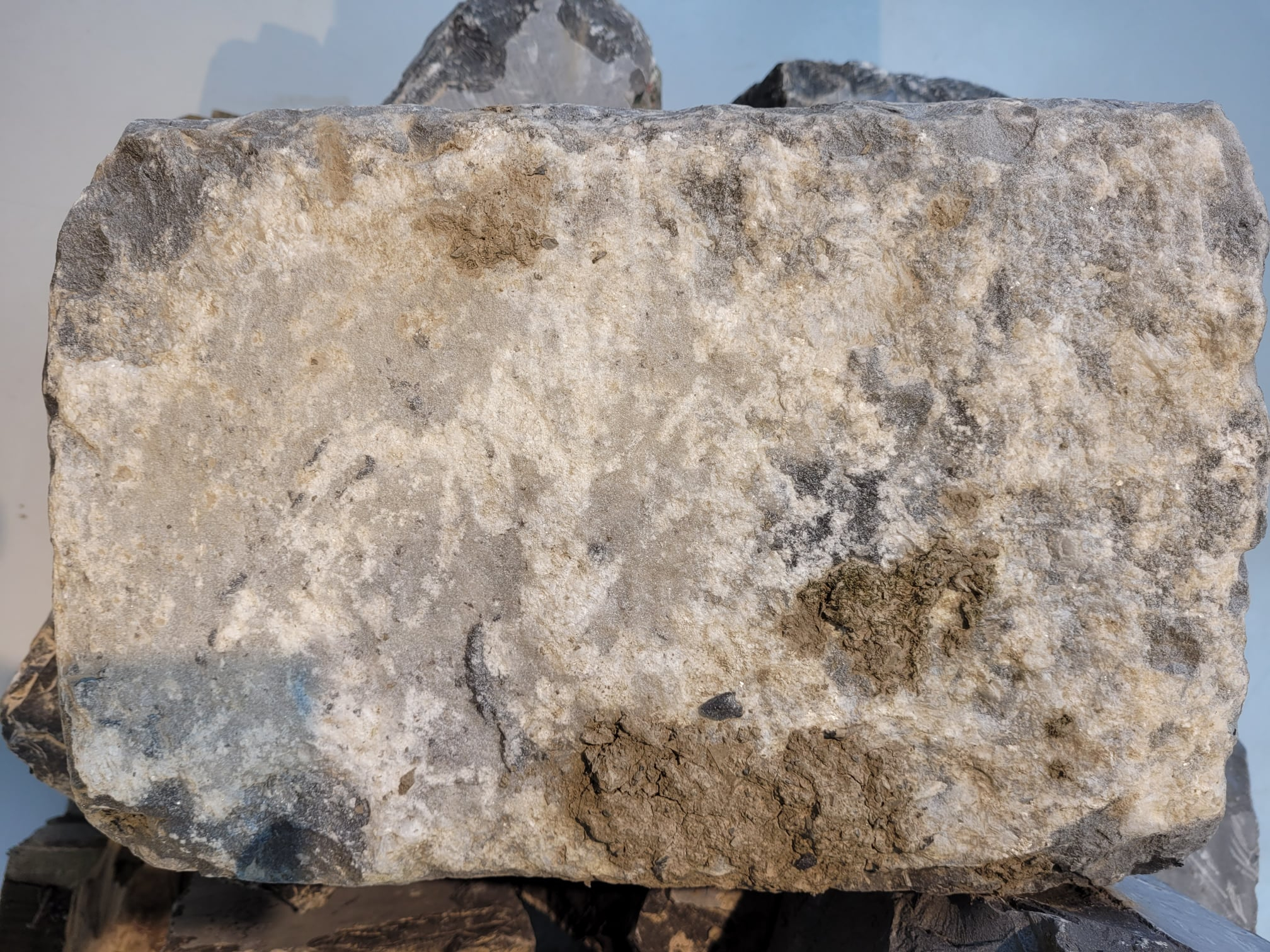 Découpée et façonnée par la main de l’homme, chacune de ces pierres offre ses trésors à nos yeux, notre regard se portant sur les aspects les plus fossilisés de celles-ci.