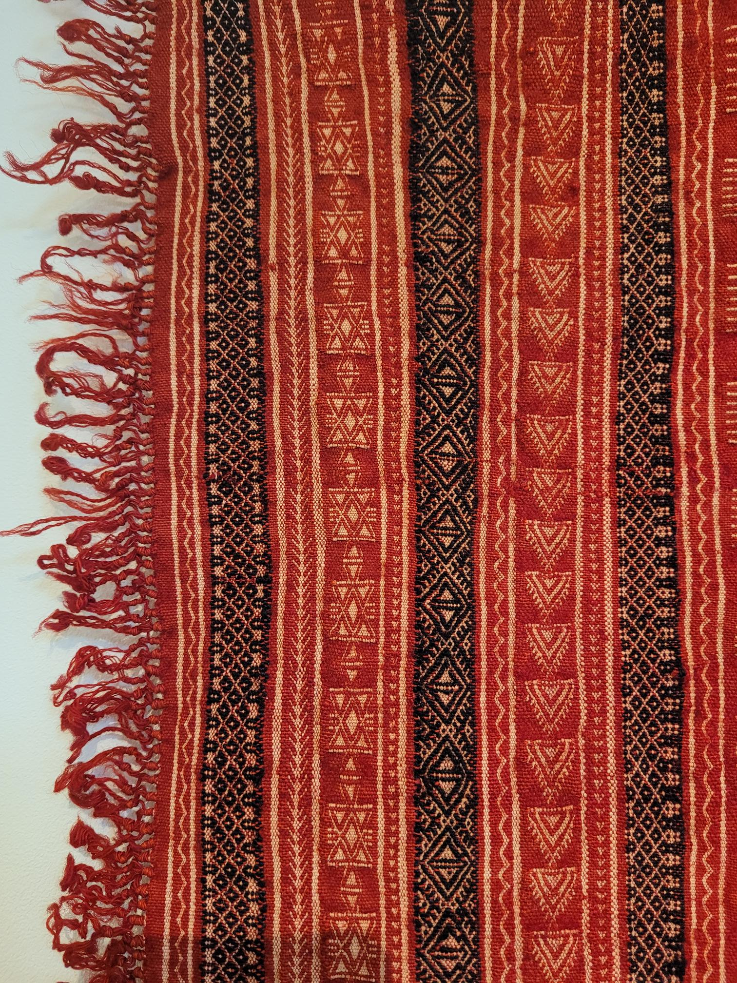 Au départ le « Bakhnoug » et les motifs tissés sont blancs, les teintures faisant apparaitre les motifs au fil des bains de couleurs. Toute une histoire prend vie, une histoire particulière et unique pour chaque femme, une histoire de vie.
