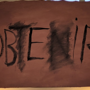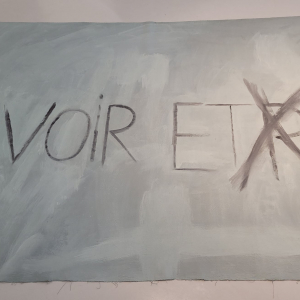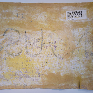 Face à l’univers de symboles, dépourvu de mots du « Bakhnoug », le geste des peintures de Pol Piérart s’imprègne, lui, du vocabulaire et du sens perdu de celui-ci, un langage particulier qui corrige, efface, transforme, sous un geste multiple de couches de peinture.