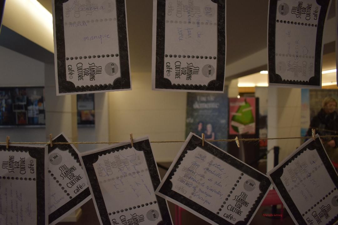 • Diffusion d’un diaporama présentant l’équipe du « Caméo » et du « Caféo », en alternance avec des photos de tickets suspendus, réalisés lors du « Still Standing for Culture » du 20 février 2021.