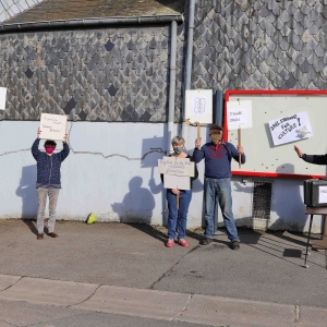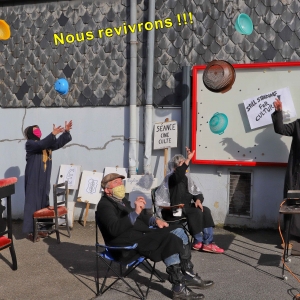 Ils brandissaient quelques calicots, criaient des slogans (arrêtez votre cinéma, ouvrez les cinémas) et ont entonné un chant revendicatif (voir vidéo n°45).