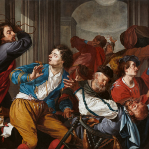 Les tableaux de Theodoor Rombouts sont remplis de visages expressifs, comme celui du Christ, occupé à chasser les marchands du temple, ou celui de Prométhée, voleur du feu des dieux, cloué au rocher et torturé par un vautour qui dévore son foie.