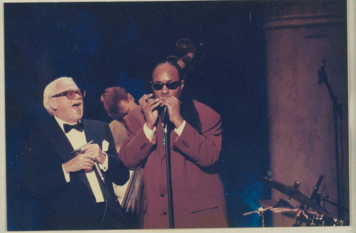 Terminant cette intéressante présentation, une courte vidéo (2'58"), de 1999, nous permet d'assister à une exceptionnelle improvisation musicale dialoguée, pleine de joie de vivre, de virtuosité et de drôlerie, à Stockolm, en 1999, avec un autre géant de l'harmonica, Stevie Wonder (né Stevland Hardaway Judkins/°1950/Saginaw/Etat du Michigan), ce dernier, en fin d'improvisation, enlaçant Toots, lui disant, simplement : "I love you Toots !" Lien de la vidéo : https://www.youtube.com/watch?v=Uzln9jXrX_g.